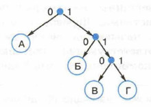 Какими кодовыми словами могут быть закодированы буквы Г и Д? Код должен удовлетворять свойству однозначного декодирования. Общая длина кодовых слов для всех пяти букв должна быть минимальной.