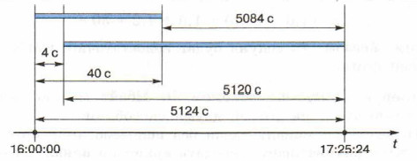 Вычислим общее время, требуемое для скачивания файла: 2 • (1,6 + 10,5) + 1,6 + 4,2 = 30 с. Таким образом, 25 секунд будет недостаточно, чтобы скачать требуемый файл.