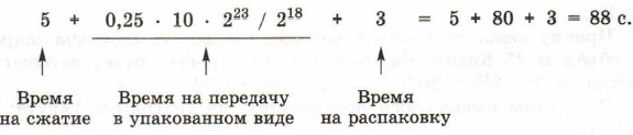 Рассмотрим вариант А. Длительность передачи информации в этом случае составит: 10 • 223/218 = 10 • 25 = 320 с. Рассмотрим вариант Б. Длительность передачи информации в этом случае составит: