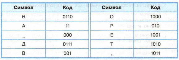 Теперь для определения кода каждой конкретной буквы необходимо просто пройти от корня до этой вершины, выписывая 0 и 1, встречающиеся на маршруте. В нашем примере символы получат следующие коды:
