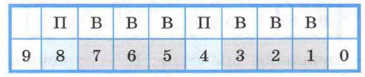 Здесь: 9 — начальное значение; 0 — конечное значение (победа). Алёша обретёт славу победителя, если после его последнего удара у змея останется 0 голов. Для этого нужно, чтобы после очередного удара Добрыни у змея осталось 3, 2 или 1 голова. Иначе говоря, позиции 3, 2 и 1 являются для Алёши выигрышными (как, впрочем, для любого из богатырей, кому они достаются в качестве исходных при последнем ударе). Выигрышные и проигрышные позиции на числовой линейке будем помечать буквами «В» и «П» соответственно: