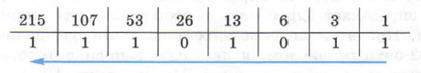 Для выполнения поразрядной конъюнкции чисел 21510 и 11010 переведём их в двоичную систему счисления. Вспомнить возможные способы перевода целых десятичных чисел вам помогут следующие записи.