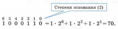 Выполним перевод двоичного числа 01000110 в десятичную систему счисления: