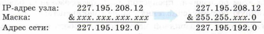 Так как адрес сети получается в результате применения поразрядной конъюнкции к IP-адресу узла и маске, то мы можем записать: