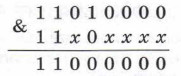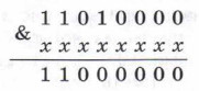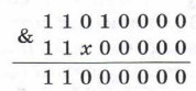 Мы видим, что 1-й и 2-й байты маски — единичные, а 4-й байт — нулевой. Будем «реконструировать» 3-й байт маски. 20810 = 110100002, 19210 = 110000002. Если 3-й байт маски представить в виде хххххххх2, то можно записать: