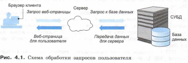 Такое разделение позволяет применять единый заранее разработанный стиль оформления для многих схожих документов, а также быстро изменять оформление документов за счёт изменения этого стиля, хранящегося в отдельном CSS-файле. Перенос правил представления данных в отдельный файл ведёт к уменьшению времени загрузки страниц сайта — описание представления данных загружается браузером только один раз, а далее, при переходе с одной страницы сайта на другую, браузер загружает только структуру страницы и хранимые на ней данные. Можно предусмотреть несколько дизайнов страницы, применяемых в зависимости от характеристик устройства (размера и разрешения экрана), используемого для просмотра. Веб-сайты и веб-страницы хранятся на так называемых вебсерверах — компьютерах, на которых установлено специальное программное обеспечение, обладающее соответствующим функционалом. Программа, позволяющая хранить и пересылать веб-страницы, также называется веб-сервером. Пользователи, имеющие доступ к сети, просматривают веб-документы при помощи программ-клиентов — веб-браузеров (рис. 4.1).