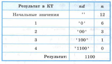 Прежде всего, обратим внимание на то, что в ней кроме переменной n целого типа используется строка nd, для которой символ « + » обозначает операцию сцепления строк. Начальное значение п вводится с клавиатуры, поэтому зададим его по своему усмотрению, например n = 12.