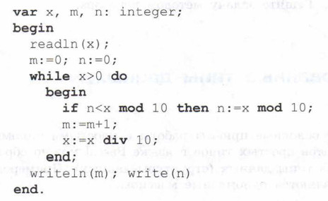 Вопросы и задания Запись алгоритмов на языках программирования1. Что такое язык программирования? Опишите состав и интерфейс среды разработки программ на используемом вами языке программирования. 2. Приведите примеры структур данных, используемых в языке программирования Pascal. 3. Кратко охарактеризуйте основные элементы языка программирования Pascal. 4. Опишите структуру программы на языке Pascal. 5. Для чего предназначены трассировочные таблицы? 6. Вещественные числа х, у, z являются исходными данными для следующего алгоритма: 1) переменной m присвоить значение х; 2) сравнить значения m и у: если у больше m, переменной m присвоить значение у; 3) сравнить значения m и z: если z больше m, переменной m присвоить значение z. Выясните, какую задачу решает этот алгоритм. Запишите его на языке программирования Pascal. Решите аналогичную задачу для чисел х, у, z и ω. 7. Определите значение переменной n, которое будет получено в результате выполнения следующей программы: