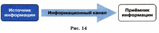 Мы постоянно участвуем в действиях, связанных с передачей информации. Люди передают друг другу просьбы, приказы, отчёты о проделанной работе, публикуют книги, научные статьи, рекламные объявления. Передача информации происходит при чтении книг, при просмотре телепередач. Любой процесс передачи информации упрощённо можно представить следующей схемой (рис. 14)
