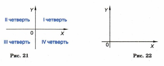 § 7. Кодирование информации Метод координат (окончание)Оси координат разбивают плоскость на четыре части, которые называются координатными четвертями (рис. 21). Далее мы будем работать только в первой координатной четверти (рис. 22).