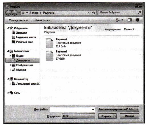 6. В тексте начните новый абзац (нажатие клавиши БЛОКНОТ ЧАЩЕ ВСЕГО ИСПОЛЬЗУЕТСЯ ДЛЯ ПРОСМОТРА И РЕДАКТИРОВАНИЯ ТЕКСТОВЫХ ФАЙЛОВ. 7. Выполните команду Файл—Сохранить как и сохраните новый документ в личной папке под именем Вариант2. 8. Выполните команду Файл—Открыть. Убедитесь, что вы создали два документа — Вариант1 и Вариант2.