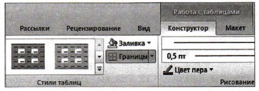 В разделе Работа с таблицами перейдите на вкладку Конструктор. Оформите таблицу, используя один из стилей по своему усмотрению.