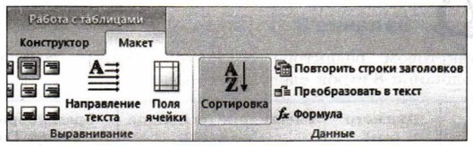 1) Выделите таблицу. В разделе Работа с таблицами перейдите на вкладку Макет. Выберите команду Сортировка.