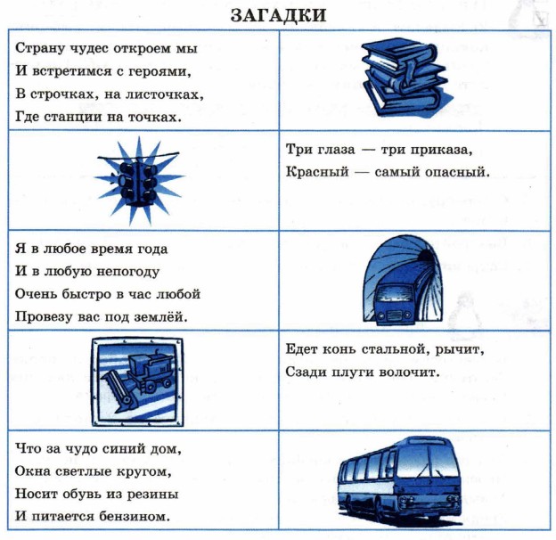 1. В текстовом редакторе откройте файл Загадки.dос из папки Заготовки. Прочитайте тексты загадок и подберите для них графические отгадки из картинок, имеющихся в файле. 2. Под текстом создайте таблицу, состоящую из 2 столбцов и 6 строк. 3. Загадки разместите в ячейках таблицы в шахматном порядке. Переносите нужные фрагменты текста следующим способом: 1) выделите нужный фрагмент;