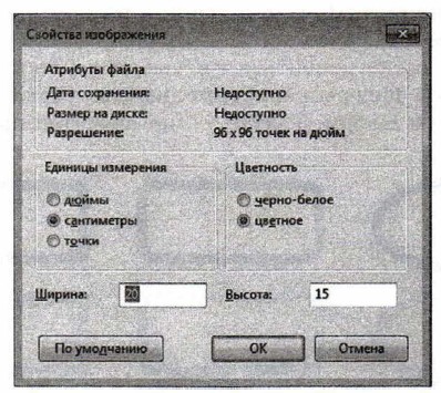 3. Для области рисования установите следующие размеры: ширина — 20 см, высота — 15 см. Для этого с помощью команды Изменить размер / Масштабировать меню Изображение задайте размер рабочей области 800 х 600.