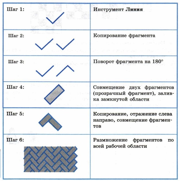 4. Сохраните результат работы в личной папке под именем Паркет. 5. Завершите работу с графическим редактором. Задание 2 1. Запустите графический редактор Paint (KolourPaint). 2. Взяв за основу следующий алгоритм, изобразите шахматную доску: