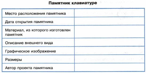 5. Результат поиска — ссылки на огромное количество найденных Интернет-страниц. Каждая ссылка сопровождается кратким описанием имеющейся на странице информации. Сначала идут ссылки на страницы, содержание которых наиболее полно и точно соответствует запросу. Говорят, что страницы отсортированы по релевантности. Зайдите на 2-3 сайта из верхней части списка. Прочитайте информацию о памятнике клавиатуре. 6. В текстовом редакторе откройте документ Клавиатура.rtf из папки Заготовки: