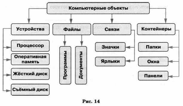 Можно предложить следующую классификацию объектов, с которыми взаимодействует пользователь при работе на компьютере (рис. 14).