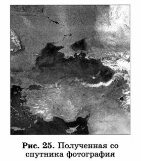 § 9. Информационное моделирование Разнообразие информационных моделей (окончание)Образные информационные модели (рисунки, фотографии и др.) представляют собой зрительные образы объектов, зафиксированные на каком-либо носителе информации (например, на бумаге). Много информации дают специалистам полученные со спутников фотографии поверхности Земли (рис. 25).