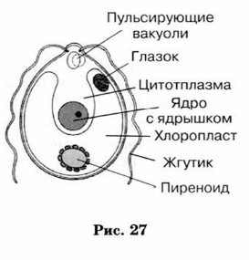 Примерами смешанных информационных моделей могут служить географические карты, графики, диаграммы и пр. На рисунке 27 приведён пример модели одноклеточной водоросли хламидомонады. Нарисованные части водоросли — образные элементы этой модели, а надписи снизу и справа от рисунка — знаковые элементы.