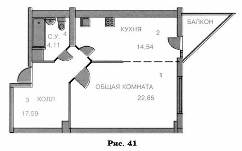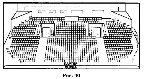 В повседневной жизни нас окружает множество разнообразных схем: схемы проезда, схемы дорожных развязок, схема метрополитена, схема расположения мест в зрительном зале, схема движения пригородных электропоездов и многие другие. Схема — это представление некоторого объекта в общих, главных чертах с помощью условных обозначений. С помощью схемы может быть представлен и внешний вид объекта, и его структура. Например, внешний вид зрительного зала представлен на схеме, изображённой на рис. 40. Представление о внешнем виде квартиры можно получить по схеме на рис. 41.