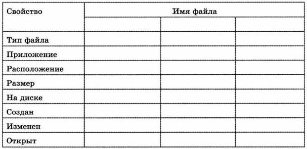 2. Внесите в соответствующие ячейки таблицы информацию о свойствах трёх файлов — текстового документа, рисунка и презентации. 3. Сохраните файл в личной папке под именем Описание1. Для этого: 1) в основном меню Файл выберите пункт Сохранить как ...;