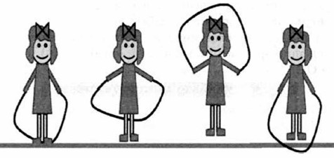4. Добавьте в презентацию ещё три копии слайда с изображением девочки. Внесите в изображение изменения, соответствующие основным фазам прыжка через скакалку. Это может выглядеть, например, так: