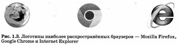 § 1.3. Всемирная паутина 1.3.1. Что такое WWW (окончание)Любой человек, имеющий доступ к Интернету, может разместить в сети свою информацию. К этой информации будет иметь доступ весь мир. Информация в WWW организована в виде страниц (web-страниц). В свою очередь, страницы могут объединяться в более крупные составляющие — сайты (англ, site — место, участок). Web-сайт — это несколько web-страниц, связанных между собой по содержанию. Сайты есть у государственных структур, общественных организаций, предприятий, фирм и компаний, музеев и библиотек, газет, образовательных учреждений, в том числе у многих школ. Каждый сайт и каждая страница имеют свой адрес, по которому к ним можно обратиться. Web-сайты сильно отличаются друг от друга по оформлению, но чаще всего они имеют похожую структуру. Каждый web-сайт имеет главную страницу, которая аналогична странице с оглавлением в книге. В текстах, размещённых на страницах сайтов, могут быть выделены некоторые слова — гиперссылки, от которых идут гиперсвязи. Они выделяются цветом или подчёркиванием. Щёлкнув мышью на таком слове, мы переходим к просмотру другого документа, причём этот документ может находиться на другом компьютере, в другой стране, на другом континенте. В качестве гиперссылок может использоваться не только текст, но и любое графическое изображение. Такую организацию информации называют гипертекстом. Перемещаться пользователю по «паутине» помогают специальные программы (web-браузеры, англ, browse — осматривать, изучать, рис. 1.3).