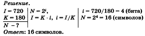 Задача 3. Информационное сообщение объёмом 720 битов состоит из 180 символов. Какова мощность алфавита, с помощью которого записано это сообщение?