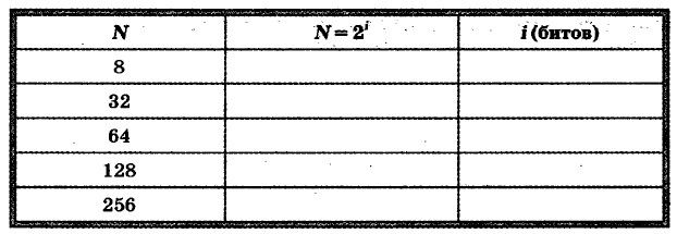 5. Определите информационный вес i символа алфавита мощностью N, заполняя таблицу: