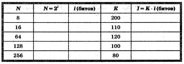 7. Определите количество информации в сообщении из К символов алфавита мощностью N, заполняя таблицу: