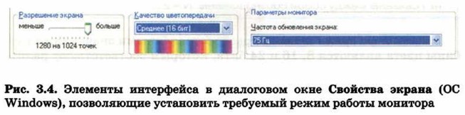 Пространственное разрешение монитора, глубина цвета и частота обновления экрана — основные параметры, определяющие качество компьютерного изображения. В операционных системах предусмотрена возможность выбора необходимого пользователю и технически возможного графического режима (рис. 3.4).
