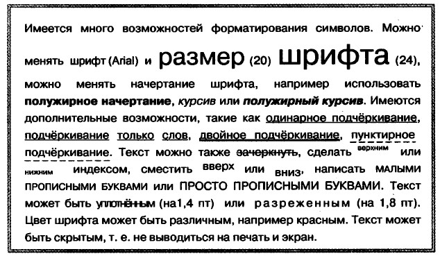 4. Сохраните изменения в файле и закройте его. Задание 4.12. Варианты форматирования символов1. В текстовом процессоре откройте файл Эффекты.rtf. 2. Измените формат символов по образцу: