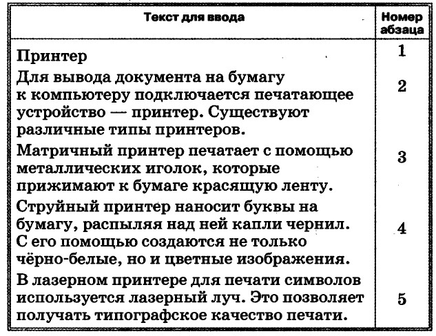 4. Сохраните файл в личной папке под именем Принтерны.rtf и закройте его. Задание 4.15. Форматирование абзацев1. В текстовом процессоре создайте новый документ. 2. Наберите черновик документа (Times New Roman, 14 пунктов, выравнивание по левому краю) с информацией о своей школе, себе и своём учителе: