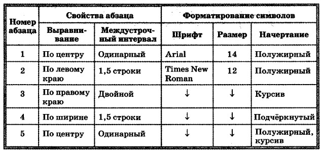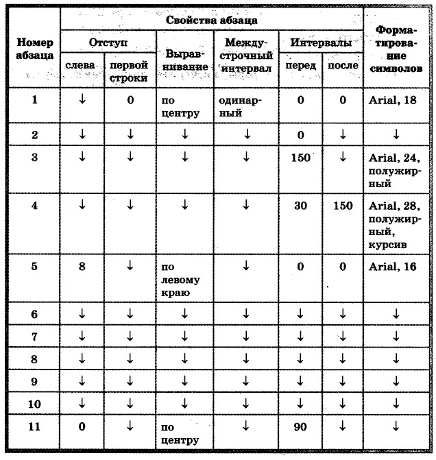 3. Выполните форматирование абзацев в соответствии со следующими требованиями:
