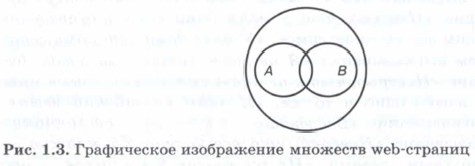 Решение. Изобразим множество всех web-страниц рассматриваемого сектора сети Интернет кругом, внутри которого разместим два круга: одному из них соответствует множество web-страниц, где истинно высказывание А, второму — где истинно высказывание В (рис. 1.3).