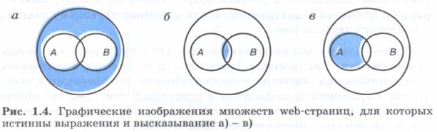 Изобразим графически множества web-страниц, для которых истинны выражения и высказывание а) - в) (рис. 1.4).