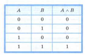 Конъюнкцию можно описать в виде таблицы, которую называют таблицей истинности: