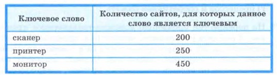 16. Некоторый сегмент сети Интернет состоит из 1000 сайтов. Поисковый сервер в автоматическом режиме составил таблицу ключевых слов для сайтов этого сегмента. Вот её фрагмент: