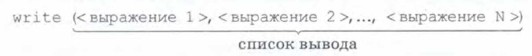 Здесь в круглых скобках помещается список вывода — список выражений, значения которых выводятся на экран. Это могут быть числовые, символьные и логические выражения, в том числе переменные и константы. Произвольный набор символов, заключённый в апострофы, считается строковой константой. Строковая константа может содержать любые символы, набираемые на клавиатуре. Пример. Оператор write (' s=', s) выполняется так: 1) на экран выводятся символы, заключённые в апострофы: s=