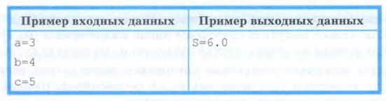 4. Известны длины сторон треугольника а, b, с. Напишите программу, вычисляющую площадь этого треугольника.