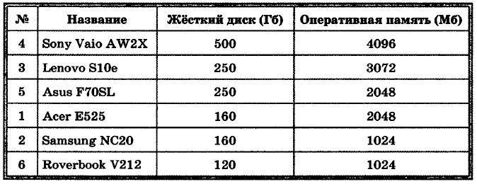 6. Ниже в табличной форме представлены характеристики ноутбуков, имеющихся в продаже в компьютерном салоне: