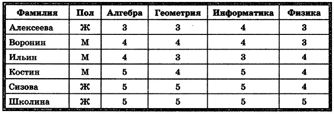 г) (ФИЗИКА=3 ИЛИ АЛГЕБРА=3) И (ГЕОМЕТРИЯ=3 ИЛИ ИНФОРМАТИКА=3)