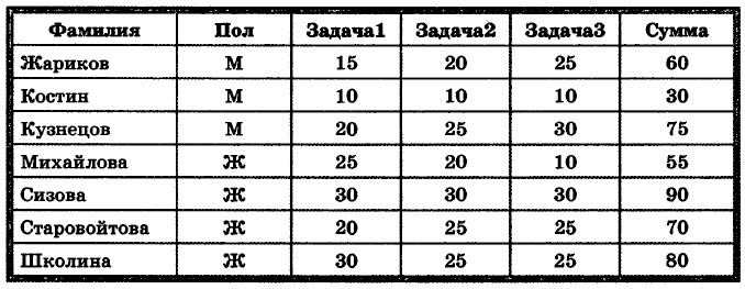 12. Ниже в табличной форме представлен фрагмент базы данных с результатами олимпиады по информатике: