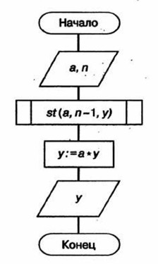 Пример 3. Алгоритм вычисления степени с натуральным показателем n для любого вещественного числа а можно представить в виде рекурсивного: