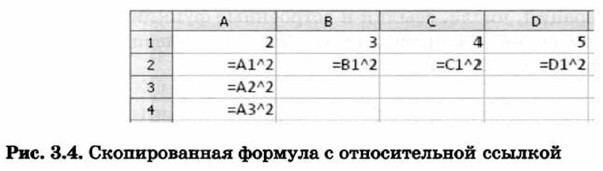 Различие между относительными и абсолютными ссылками проявляется при копировании формулы из текущей ячейки в другие ячейки. Относительные ссылки. Присутствующая в формуле относительная ссылка определяет расположение ячейки с данными относительно ячейки, в которой записана формула. При изменении позиции ячейки, содержащей формулу, изменяется и ссылка. Рассмотрим формулу При копировании формулы вдоль столбца и вдоль строки относительная ссылка автоматически корректируется так: