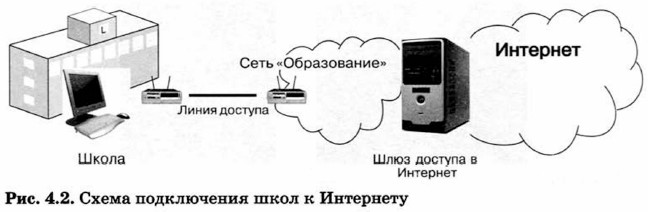 § 4.1. Локальные и глобальные компьютерные сети Что такое глобальная компьютерная сетьЛокальные сети, объединяя десятки компьютеров на небольшой территории, не обеспечивают совместный доступ к информации пользователям, находящимся на значительном расстоянии друг от друга (например, в различных населённых пунктах). Глобальная компьютерная сеть — это система связанных между собой компьютеров, расположенных на сколь угодно большом удалении друг от друга (например, в разных странах и на разных континентах). Примерами глобальных компьютерных сетей могут служить региональные и корпоративные сети. Региональные компьютерные сети обеспечивают объединение компьютеров в пределах одного региона (города, области, края, страны). Корпоративные компьютерные сети создаются для обеспечения деятельности различного рода корпоративных структур, имеющих территориально удалённые подразделения (например, банков со своими филиалами). Наиболее известной и самой обширной глобальной компьютерной сетью является Интернет. Эта сеть объединяет многочисленные локальные, региональные и корпоративные сети, а также компьютеры отдельных пользователей, распределённые по всему миру (рис. 4.2). Основой любой глобальной компьютерной сети являются компьютерные узлы и каналы связи. Узел — это мощный компьютер, постоянно подключённый к сети. К узлам компьютерной сети подключаются абоненты — персональные компьютеры пользователей или локальные сети. Для передачи данных в глобальных сетях применяют самые разнообразные физические каналы: электрический кабель; радиосвязь через ретрансляторы и спутники связи; инфракрасные лучи (как в телевизионных пультах дистанционного управления); современный оптоволоконный кабель; обычную телефонную сеть. Организация, предоставляющая пользователям связь с глобальной сетью через свои компьютеры, называется провайдером (англ. provider — поставщик) сетевых услуг.