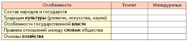 Вспоминаем то, что знаем • Объясни значение слов: цивилизация, государство, граждане, деспотия, иероглифы, религия. (Словарь) • Вспомни основные особенности Древнего Египта (§ 7, 8, 11) и начни заполнять в тетради таблицу (колонка «Египет»):