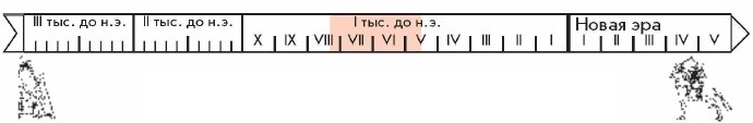 К востоку от Междуречья начинается горная страна. В центре её — сухие пустыни, а по краям — лесистые горы, с которых к зелёным оазисам стекают ручьи. Жившие здесь племена освоили орошаемое земледелие, стали строить города. Примерно в XV-X веках до н.э. сюда и в Среднюю Азию перегоняют свои стада индоевропейские племена ариев. По их имени страну стали называть Иран — «земля ариев», а всю группу племён — ираноязычными. Часть пришельцев (мидийцы, персы, бактры) переняли земледельческую городскую культуру. В X-VIII веках до н.э. с помощью железных лопат и топоров они прорыли в долинах горных рек каналы, разбили в пустынях цветущие сады и возделали поля. Но часть ариев (парфяне, скифы, саки) остались ско- товодами-кочевниками. Конные воины, вооружённые луками, железными копьями и мечами, словно смерч, налетали из степей на городские оазисы — жгли дома, забирали урожай. В ответ войска городов отправлялись жечь стойбища кочевников.