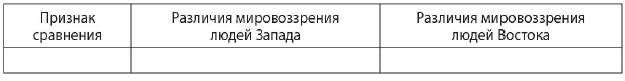 Проверь, готов ли ты овладевать умениями этого раздела На отдельном листочке составь таблицу различий взглядов на мир людей цивилизаций Запада и цивилизаций Востока.